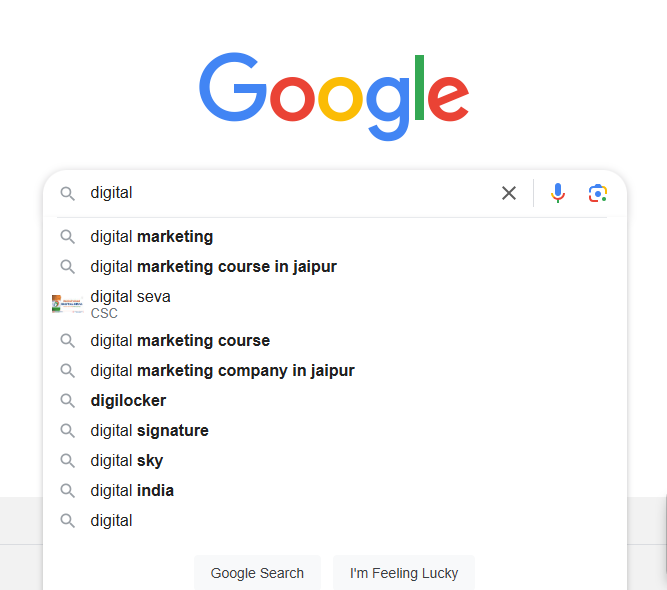 When you type a keyword into Google’s search area, it will provide a list of suggestions: